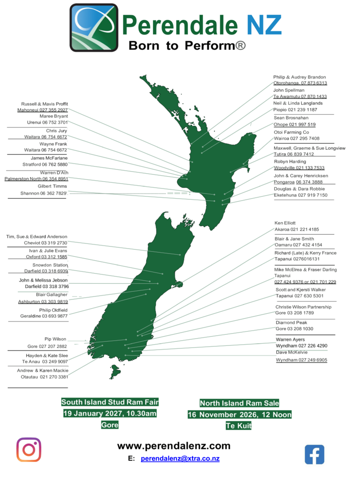 With over 40 Perendale Breeders throughout New Zealand you will find one near you.